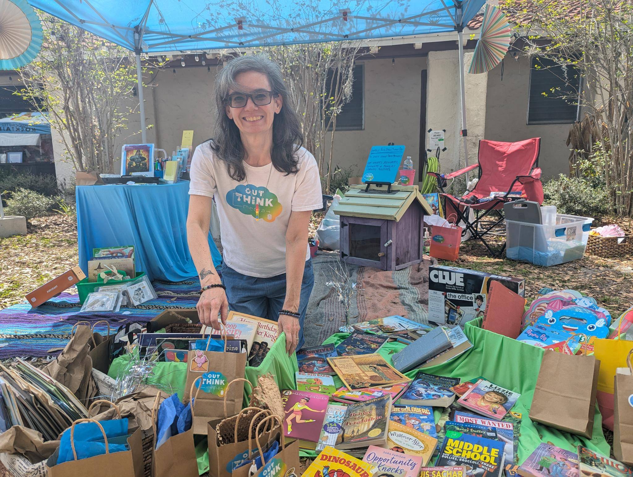Cindy at the Media Swap in Audobon Park, giving away books and digital literacy kits (March 14, 2026)